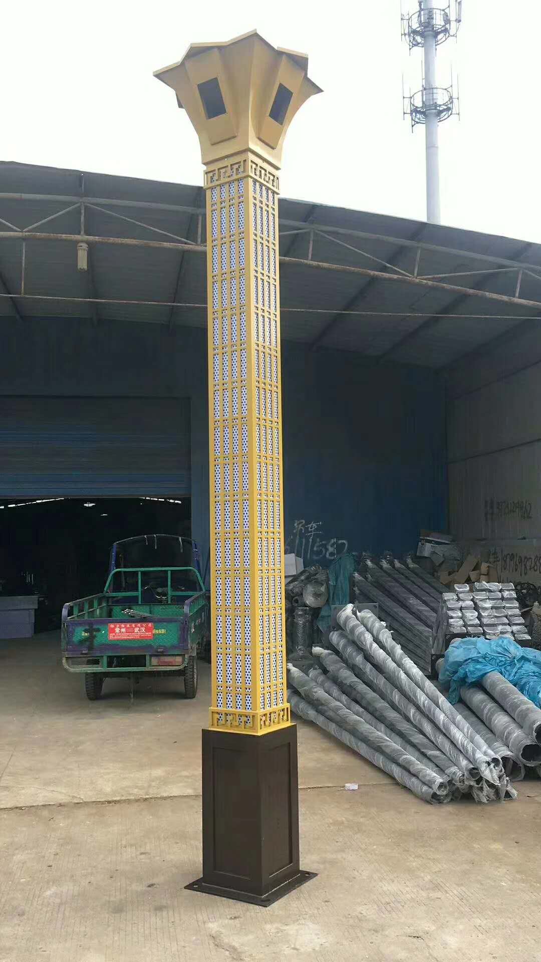 做工;鑄鋁和鑄鐵的做工要比鋼鐵材料的復雜的多,這里以鋁為題展開分析。首先要將鋁燒成液體,然后通過專用磨具將液體變成型,中間會再鋁制桿上雕刻各種花紋,待其干燥后鍍鋅噴塑。工期和復雜程度都要比鋼鐵材料的多。而鋼鐵材料只是用鋼板經過剪板機剪裁成所需的錐形板塊,然后通過卷板機一次卷成燈桿,再通過焊接、打磨等工序將其美觀一下,完成后鍍鋅噴塑